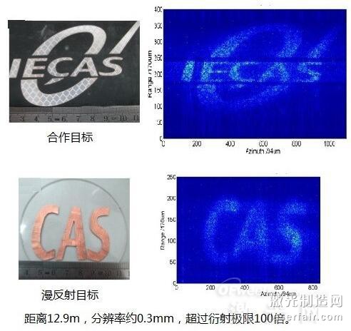 圖1 距離12.9m處合作目標和非合作目標SAL成像