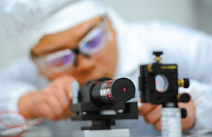 在寧波中物激光與(yu) 光電技術研究所的超淨間光學實驗室,科研人員正在進行激光光斑聚焦調節。