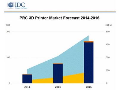 從(cong) 2014年開始,3D打印機銷量開始在中國有所增長,2014年出貨量超過3.4萬(wan) 台。IDC預計2015年的出貨量增長率將超過120%,達到7.7萬(wan) 台。其中,增長動力主要來自桌麵級3D打印...