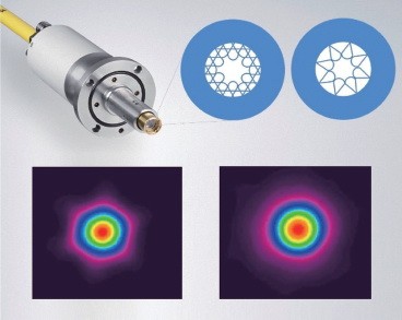 微納結構的空芯光纖(Microstructured hollow-core fibers,簡稱MHCFs,見圖2)支持光束在中空芯部(例如充氣或真空狀態)中傳輸,這使得其能夠傳輸極高的功率並且徹底消除了非線性效應。這種光纖從光子晶體光纖(photonic crystal fibers)演變而來,最早由來自英國巴斯大學(Bath University)的Russell,Knight和Birks共同開發研製。從那之後,各種不同樣式的微納結構光纖被開發出來,並證明了其可以傳輸高功率超快激光的潛在價值。此類光纖擁有類似於單模階躍折射率光纖(step-index fibers)的芯部尺寸,而約束光線的芯部構造像是不規則的水晶。但不同的是,其芯部長度可以大大延長,並且承受更高的損傷閾值。99%的激光光線在其中空芯部中傳導,可允許的脈衝能量等級提高到了毫焦耳(mJ)級別,大大超過了許多材料加工所需的能量等級。