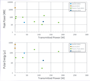圖4:現場試驗數據與一些選取的論證光纖傳輸高功率和高脈衝能量性能結果的比較