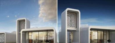 顧名思義,這座房屋是用3D打印機“打印”而成的。由改良水泥混合玻璃纖維製成的材料,構成了3D打印機所使用的“油墨”。這些“油墨”將房屋的牆體等結構從下至上打印成型,並吊裝拚接成一座建築,其過程與奶油蛋糕裱花邊有些類似。而打印機“打印”的主要是房屋外殼部分,負責承重的主體結構並不包括在內。