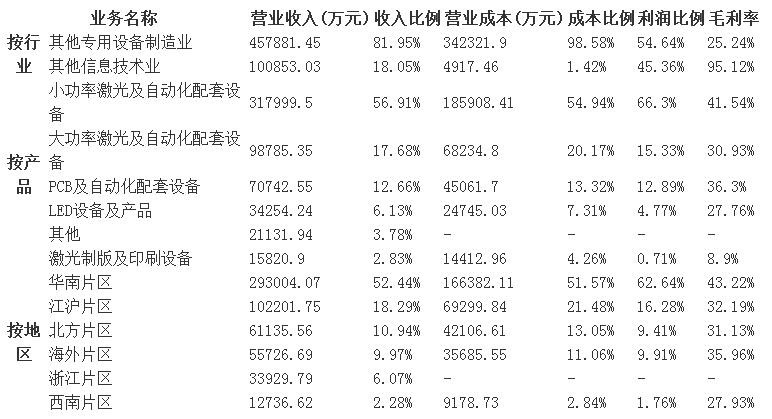 其中,大功率激光切割機實現銷售收入85,378萬元,同比增長5.51%;大功率激光焊接機實現銷售收入7,570萬元,同比增長187%。