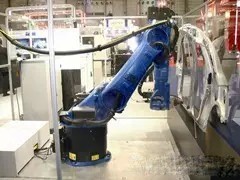 (3)激光焊接機器人基於機器人激光加工係統應用於汽車製造業。汽車車門、底板激光遠程掃描焊接成套設備。采用高功率光纖激光器或者碟片激光器, 研究機器人6軸與振鏡3軸的聯動控製係統,汽車底板激光遠程掃描焊接生產線與汽車車門激光遠程掃描生產線工藝規劃,激光遠程掃描焊接工藝與質量檢測技術 等,滿足三維車身焊點的高效定位,車門激光焊接長度≥4000mm,底板激光焊接長度≥4000mm,激光焊接速度≥30m/min,用於汽車工業具體操 作如圖5所示。
