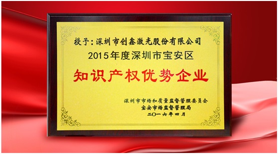 4月26日世界知識產(chan) 權日期間,深圳市寶安區為(wei) 促進本區企業(ye) 自主創新,帶動優(you) 勢企業(ye) 示範作用,特舉(ju) 行“2015年度深圳市寶安區知識產(chan) 權優(you) 勢企業(ye) ”牌匾頒授儀(yi) 式,創鑫激光憑借...