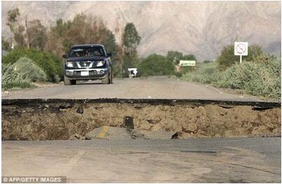 地震給地麵造成的破壞:大地震後,墨西哥城市墨西卡利公路上出現一條大裂縫。