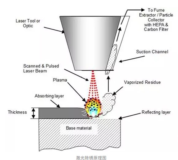 利用激光高能、高頻率、高功率的特性,把高能量瞬間沉積在很小的一片區域內(nei) ,利用高溫灼化氧化層,又稱為(wei) 激光清洗。