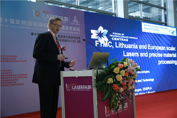 2016年5月19-20日,2016亞(ya) 歐國際工業(ye) 激光峰會(hui) 在深圳會(hui) 展中心4號館會(hui) 議廳隆重舉(ju) 行。在為(wei) 期一天半的會(hui) 議裏,囊括了來自亞(ya) 洲、歐洲共18位研究者與(yu) 企業(ye) 家演講人。他們(men) 分別來自中國、日本、德國、英國、愛爾蘭(lan) 、瑞典、立陶宛和澳大利亞(ya) 等國,充分展示了他們(men) 在激光技術、激光加工的研究成果和對行業(ye) 發展的深入探討與(yu) 見解,成功打造了一場覆蓋亞(ya) 洲與(yu) 歐洲激光科研、企業(ye) 高層、工程師、研究員等參與(yu) 的高水平交流盛會(hui) 。