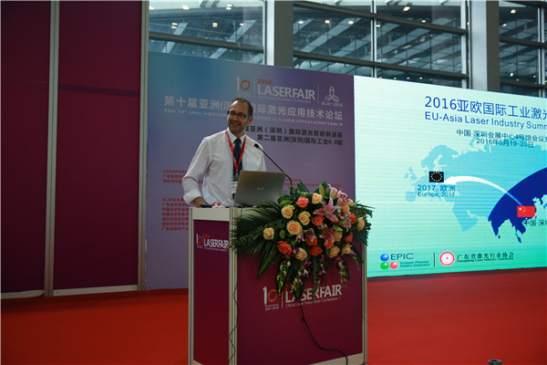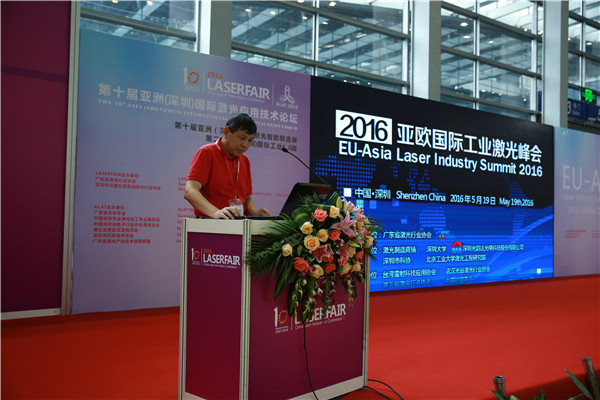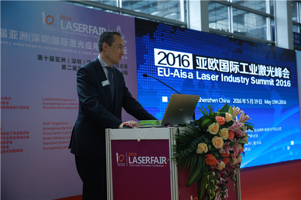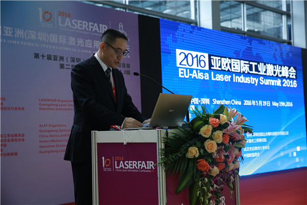 2016首屆亞(ya) 歐國際工業(ye) 激光峰會(hui) 是由廣東(dong) 省激光行業(ye) 協會(hui) GDLIA與(yu) 歐洲光電產(chan) 業(ye) 協會(hui) EPIC聯合主辦的專(zhuan) 注於(yu) 激光產(chan) 業(ye) CEO與(yu) 高層企業(ye) 家交流的平台。首屆峰會(hui) 承辦單位包括《激光製造商情》、深圳大學、北京工業(ye) 大學激光工程研究院、深圳光韻達光電科技股份有限公司、深圳市科協,並得到中國歐盟商會(hui) 、台灣鐳射科技應用協會(hui) 、武漢·中國光穀激光行業(ye) 協會(hui) 、湖北省激光行業(ye) 協會(hui) 等的支持。