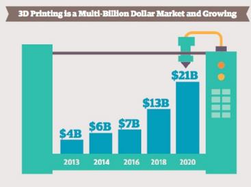 據某研究機構預測,在2016年,3D打印市場的規模預計為(wei) 73億(yi) 美元,這其中包括3D打印機、3D打印服務、3D打印材料,相比去年增長了30%。