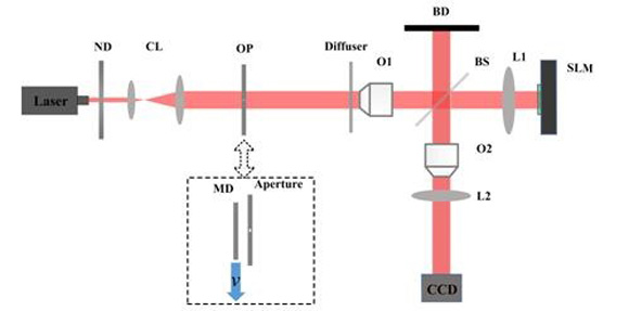 武漢光電國家實驗室生物醫學光子學功能實驗室博士生李陽陽等人在李鵬程教授的指導下, 提出了利用波前調製技術和激光散斑襯比分析方法相結合實現透過散射介質運動物體(ti) 相對速度變化成像的方法, 並利用模型實驗驗證了該方法。光學成像過程中散射介質(如生物組織、毛玻璃等)擾亂(luan) 了傳(chuan) 播的波前,導致成像的模糊不清。利用空間光調製器的相位調製特性,對被散射擾動的波前進行相位補償(chang) ,從(cong) 而可以克服散射影響實現透過散射介質的成像,進一步結合激光散斑襯比分析方法,最終實現了透過散射介質的相對速度變化成像。
