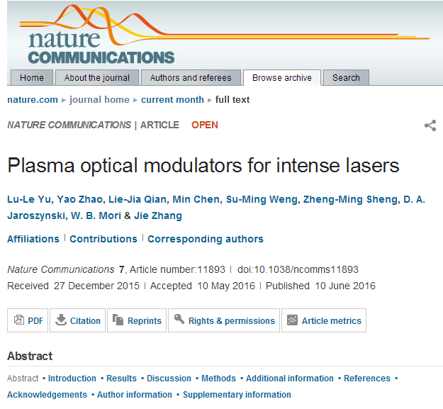 強激光與(yu) 物質的作用的效應非常依賴於(yu) 激光場的時空特性,因此調控強激光脈衝(chong) 的時空特性就可以在很大程度上調控強激光與(yu) 物質的相互作用,這對很多應用極為(wei) 重要。當激光光強大於(yu) 一定幅度時,普通物質被光場電離後形成等離子體(ti) 。這時強激光與(yu) 物質的作用就變成了激光與(yu) 等離子體(ti) 的作用。由於(yu) 等離子體(ti) 沒有激光損傷(shang) 閾值、可以通過塑造一定的時空密度結構,使其成為(wei) 一種新型的獨一無二的光學介質,用於(yu) 對強激光進行調控。目前人們(men) 已經提出或者利用等離子體(ti) 反射鏡、等離子體(ti) 光柵、等離子體(ti) 透鏡、等離子體(ti) 通道、等離子體(ti) 拉曼放大器等來操控強激光脈衝(chong) ,但這些都難以用來實現對強光的頻譜進行深度調製。傳(chuan) 統的光調製器是高速光通信和集成光學的關(guan) 鍵器件,被廣泛用來實現對光信號的振幅、頻率、相位和偏振狀態的調製。但這類調製器的調製速度目前僅(jin) 限於(yu) 100GHz量級(相應地調製頻譜較窄),而且光損傷(shang) 閾值很低,例如最新的摻氧化鎂铌酸鋰電光調製器能承受的最大激光強度在102W cm-2量級,難以用來對強光進行調製。
