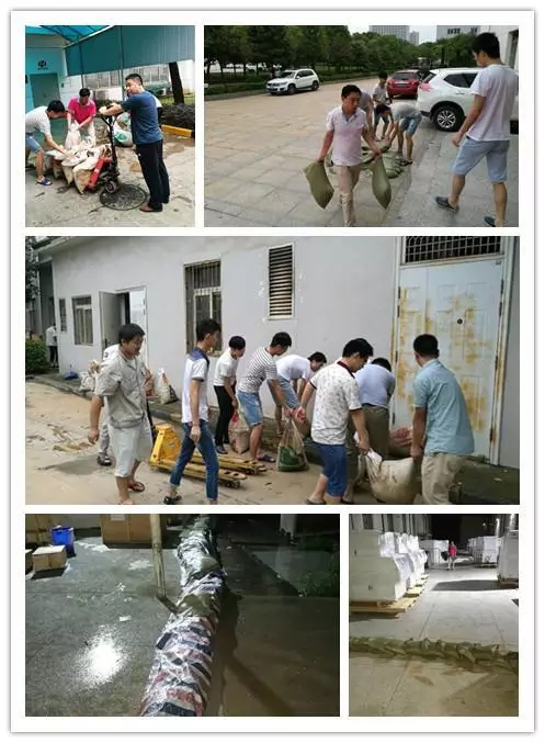 7月5日晚,暴雨如期而至。因此前已製訂詳細預案,從防汛物資到人員動員各方麵做了充分準備,所有重要物料均已在暴雨來臨前轉移至高處,公司大樓和設備廠房前也已壘起層層沙袋。7月6日清晨6點,公司總經理鄧家科冒著暴雨涉水來到公司,帶領數十名員工現場組織防汛抗洪。