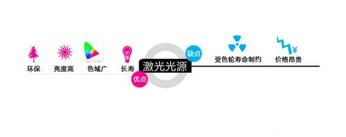 未來這個局麵還有可能改變。近期奧圖碼以及海信都表示在年底要推出雙色激光光源的投影機。也就是采用紅藍兩色激光+熒光粉的模式,這樣就可以大大的改善激光投影機畫麵色彩不準確的問題了,同時這個方案也保證了光源的經濟性。