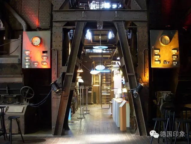 展廳內保留了高大的鍋爐設備鋼架結構,斑駁的磚牆,生鏽的鐵質構件,完全是十九世紀西方大工業時期的產物,粗獷而強悍;改造後穿插期間的現代工業材料、玻璃、拋光的合成材料、合金鋼具、燈具等細膩而精湛,兩者所產生的對比與融合相映成輝。
