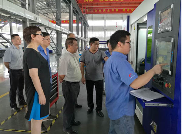 徐順東局長一行在奔騰激光(溫州)有限公司行政人力資源總監肖泉該、製造總監吳小虎和辦公室主任唐愛敏的陪同下,參觀了現代化的生產車間、整潔幹淨的員工食堂、綠樹成蔭的花園式廠區,對奔騰激光(溫州)有限公司的廠房建設和投產速度給予高度肯定,特別是對公司製造流程采用日本精益化生產模式和工作崗位區域化、定崗定責等管理方式大加讚賞,公司引進意大利高端激光設備製造技術及采取歐盟嚴格的檢驗標準生產的高功率、高精度激光切割加工設備因其科技含量高、切割精度和速度快、性能優異等特點得到了來訪嘉賓的一致好評。
