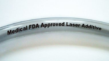 將經由FDA批準的突破型添加劑與(yu) 聚合物進行混合後能夠實現卓越的激光打標對比度、打標速度以及突顯邊緣線條的細節感。摻入激光添加劑的產(chan) 品能夠提升20%的打標速度。這些優(you) 勢迅速抵消了增量材料的附加成本。經濟適用型的摻鐿光纖激光器技術領域的進展在這方麵起發揮重要作用。嵌入式的在線飛行激光打標技術如今正取代了傳(chuan) 統的輪轉凹印和移印工藝。優(you) 化塑料激光打標在材料科學方麵的化學機理要求掌握聚合物、著色劑、顏料、染料溶解度、顆粒大小、閾值濃度極限、色彩搭配以及監管認證等領域的專(zhuan) 業(ye) 知識和技能。