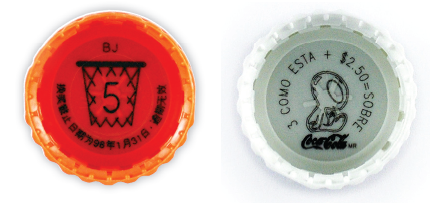 “在線飛行”激光打標是最為(wei) 專(zhuan) 業(ye) 化的一種激光應用技術,主要被用於(yu) 電線/電纜、管狀物和管道等模製和擠壓產(chan) 品。聚烯烴合成酒瓶塞子以及無底紙的飲料瓶蓋上的蓋帽促銷的字母數字文本和圖形(圖4)的打標速度能達到2000件/分鍾。文本和機器視覺編碼的線性打標速度能達到152.4米/分鍾甚至更快,如今,無墨激光打標正在取代傳(chuan) 統的旋轉凹印和移印工藝。