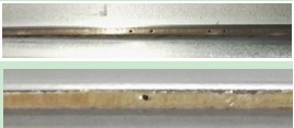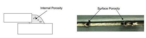 對於(yu) 頂蓋激光釺焊來說,氣孔產(chan) 生的原因主要是第一種,可能是雜質受熱分解,也可能是鍍鋅層蒸發不完全而造成。氣孔分為(wei) 表麵氣孔和內(nei) 部氣孔,內(nei) 部氣孔看不到,通常肉眼直接能看清的為(wei) 表麵氣孔(圖3所示)。