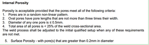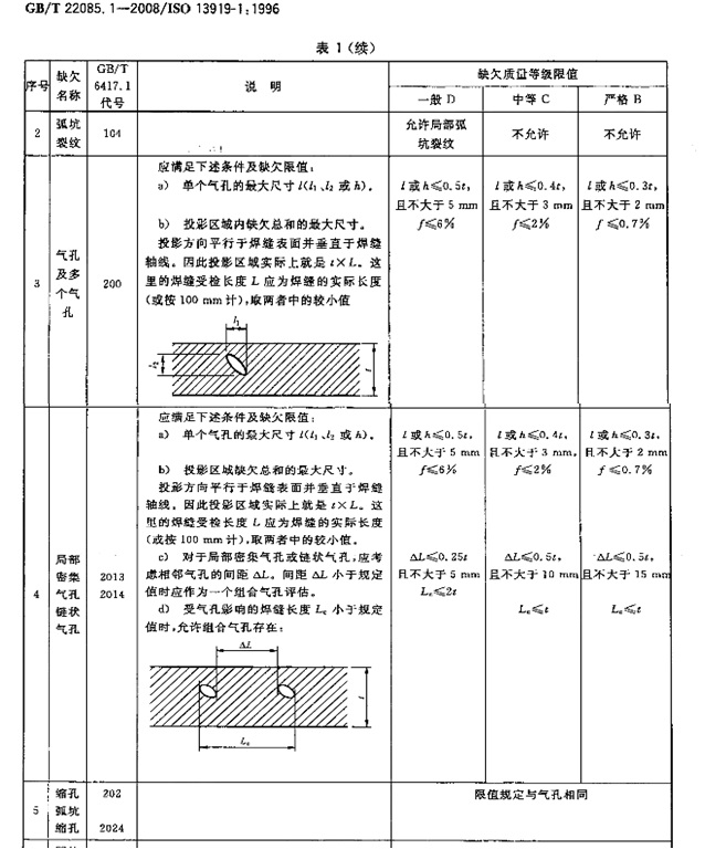 激光焊相關(guan) 氣孔標準,見表1,參見13919-1、ISO 5620等。企業(ye) 對焊縫氣孔數量有大小有嚴(yan) 格的限製。針對內(nei) 部氣孔,最大直徑為(wei) 0.5mm,針對外部氣孔,根據要求為(wei) 0.2mm,不影響後續油漆噴漆即可。另外,從(cong) 金相上來看,氣孔主要集中在焊縫的底部。