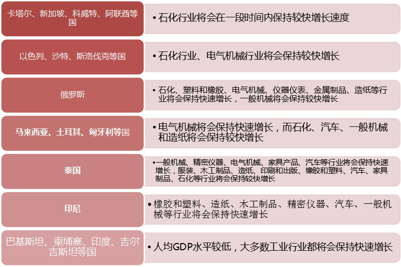 在東南亞,重視東南亞地區的產能合作新市場,抓住其產業深化重要機遇,推動裝備製造業滲透式輸出;在中亞,重視中亞地區基礎設施開發,加大金融對裝備製造企業走出去的支持,打造裝備製造業產能輸出樣板工程;在中東及北非,深化與中東及北非地區能源資源勘探開發合作,依托西部工業能力,構建能源勘探、采掘、服務價值鏈條;在中東歐,注重與優質資源的深度合作,共建研究院和培訓機構,推動中歐中高端裝備產業合作創新,建設中高端裝備進軍西歐的橋頭堡。