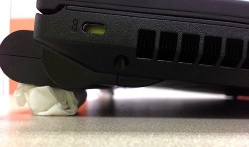 在筆記本底下架起支撐物,讓整台電腦懸空。你桌上的任何物品都可以哦,哪怕是一團紙。