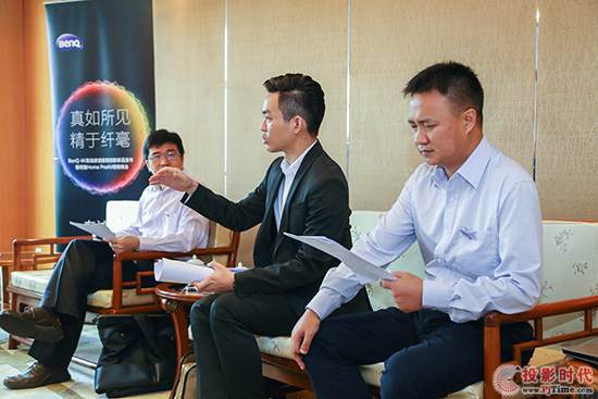 2016年9月7日,明基在蘇州舉辦了盛大4K家庭影院投影機新品發布會,並推出了W11000和X12000兩款4K專業家用新品。它們的上市也將成為明基投影機在挑戰更高技術之旅中的重要一步,為消費者帶來更棒的視覺享受!會後,投影時代網及多家專業媒體群訪了明基中國產品本部總經理黃仁宏先生、明基全球產品策略行銷中心產品經理黃書韋先生和明基電通中國投影機事業部高級產品經理劉茂瑞先生,就新品、技術及品牌等多個層麵,進行了深入溝通了解。