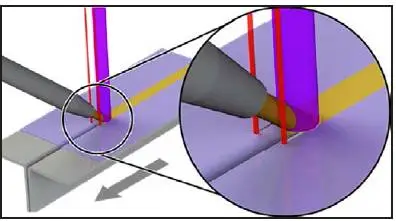 電鍍低碳鋼釺焊的研究重點是焊接質量及焊縫外觀。特別是留在鍍鋅層上的氧化物和汙染物,它們是造成飛濺和邊緣粗糙的主要原因。對該領域的研究催生出一種新的三光點釺焊係統,沿鋼板邊緣的兩個引導光束,用於清理汙染物並預熱鍍鋅層以改善浸潤。緊隨其後的主光束則提供能量熔化Cu/Si釺料,將剛剛清理過邊緣表麵的兩個鋼板無縫焊接,如圖1所示。