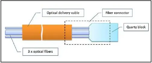 圖2 三纖芯三光點釺焊光路。特別設計的光路使具有不同芯徑的光纖通過一根操作光纖進行傳輸,在釺焊區域內產生不同尺寸的光斑。