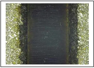我們發現,先進行表麵織構並使金屬表麵變暗,然後用1.9 μm光纖激光器的熱量能夠顯著改善聚合物與金屬的焊接強度。更長的波長可以直接對聚合物及從聚合物到金屬表麵傳輸熱量。聚合物的直接導熱與深色結狀金屬表麵結合提供了理想的焊接條件。我們進行了聚合物與鈦的焊接,密封性好,焊接強度高,在受到剪切力時才在聚合物層失效。