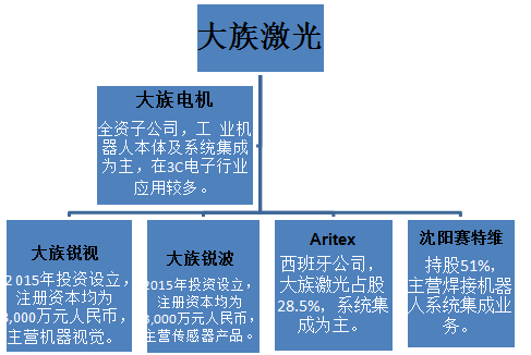 除了大族電機,大族激光還在2015年投資設立了深圳市大族銳視科技有限公司和深圳市大族銳波傳感科技有限公司。大族銳視、大族銳波注冊資本均為3,000萬元人民幣。兩家公司的主營業務在於機器視覺和傳感器等部件,進一步提升公司在機器人產業的核心競爭力。