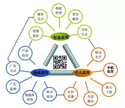國外對二維碼技術的研究始於20世紀80年代末,我國對二維碼技術的研究開始於1993年。二維碼作為一種全新的信息存儲、傳遞和識別技術,自誕生之日起就得到了世界上許多國家的關注。美國、德國、日本等國家,不僅已將二維碼技術應用於公安、外交、軍事等部門對各類證件的管理,而且也將二維碼應用於海關、稅務等部門對各類報表和票據的管理,以及商業、交通運輸等部門對商品及貨物運輸的管理等等。而信息獲取、網站跳轉、防偽溯源、優惠促銷 、 手機電商、會員管理等都是它最主要的功能體現。