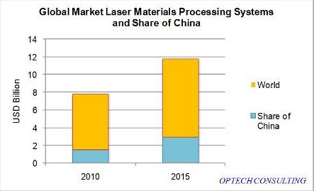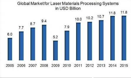 激光材料加工係統從(cong) 2005年到2015年的市場變化