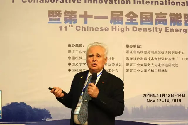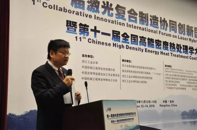 在《中國製造2025》計劃和“一帶一路”戰略實施的背景下,為從中國製造到中國創造、從技術創新到設計創新轉變貢獻力量。我校黨委書記梅新林、中國光學學會激光加工專業委員會主任王又良、中國機械工程學會熱處理分會副理事長徐躍明、中國機械工程學會特種加工分會秘書長徐均良分別致辭。浙江省外專局局長厲勇、浙江省教育廳高科處處長呂華等領導出席大會。大會由浙江省高端激光製造裝備協同創新中心執行主任姚建華教授主持,來自美國、英國、德國、烏克蘭、日本、新加坡等8個國家和地區的大學、科研院所和企業的280餘名嘉賓參加了會議。中國光學學會激光加工專業委員會主任王又良致辭