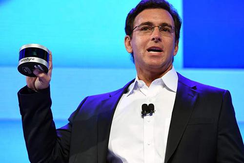 福特汽車CEO馬克·菲爾茨在2016年CES上手持Velodyne新款固態混合超級冰球,2017年Velodyne又會(hui) 有什麽(me) 新消息呢?