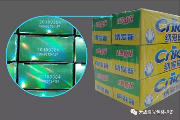 針對各式各樣的包裝材料,近200台各種類別的大族激光的激光打標機運行於(yu) 各個(ge) 基地及外協工廠,在全係列日化產(chan) 品上,采用激光整箱標記數字碼、外箱標記關(guan) 聯箱條碼。各類產(chan) 品標識效果如下: