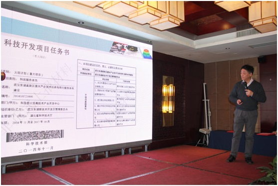 武漢聯投佩爾置業有限公司總經理孫德剛進行東湖高新集團激光產業園項目發布