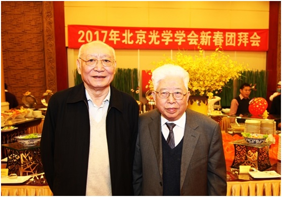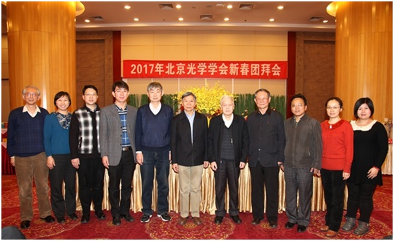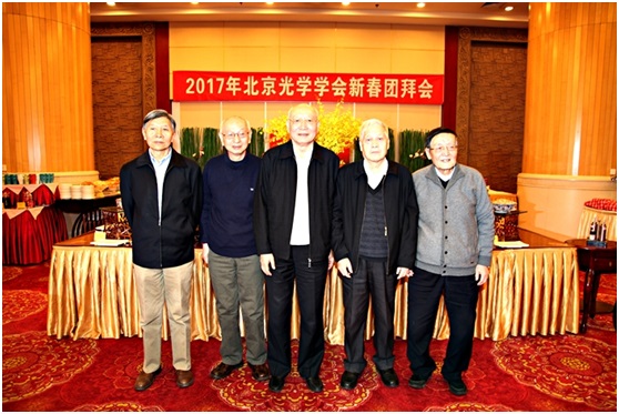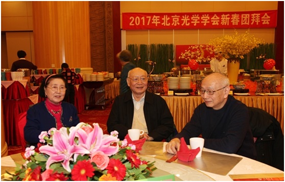 新春伊始,1月21日北京光學學會(hui) 在中國科技會(hui) 堂一層宴會(hui) 廳舉(ju) 辦2017年新春團拜會(hui) 。在京的光學界老前輩、北京光學學會(hui) 名譽理事長金國藩院士和夫人、周立偉(wei) 院士,簡水生院士和夫人,姚駿恩院士,學會(hui) 理事長許祖彥院士和夫人、學會(hui) 副理事長李天初院士和夫人,北京市科協學會(hui) 部李金濤部長、杜楊副部長,原國家科技部高新技術與(yu) 產(chan) 業(ye) 化司孫中發處長,中國光學光電子行業(ye) 協會(hui) 副秘書(shu) 長所洪濤,北京光機電一體(ti) 化協會(hui) 常務副理事長陳端業(ye) ,北京模具行業(ye) 協會(hui) 常務副理事長蔣學文,北京機械工程學會(hui) 常務副秘書(shu) 長李海濤,北京電子學會(hui) 常務副秘書(shu) 長郭華平,北京機林學會(hui) 副秘書(shu) 長周彩賢,中展集團華港展覽服務公司經理苗立剛,北京光學學會(hui) 常務副理事長梁誌遠、副理事長郭少陵,專(zhuan) 家委員會(hui) 副主任盛林、張育川、朱平、杜宗國,監事長劉永幀,秘書(shu) 長劉寶勝、副秘書(shu) 長高偉(wei) 男、延鳳平、林延東(dong) ,以及首都光學光電子學界、激光醫學界專(zhuan) 家,和北京光學學會(hui) 高校研究生分會(hui) 的代表等共計108人,不懼北京地區四九天的酷寒出席了團拜會(hui) 。