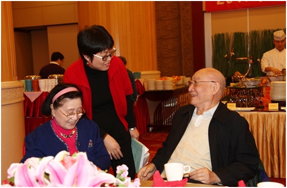 圖11、金國藩院士(中)和夫人段老師(左),與(yu) 姚駿恩院士(右)在團拜會(hui) 上。