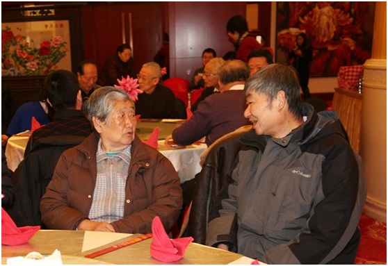 圖10、周立偉(wei) 院士(右)和女兒(er) 周霞(左),與(yu) 金國藩院士夫人段老師(中)在團拜上合影。