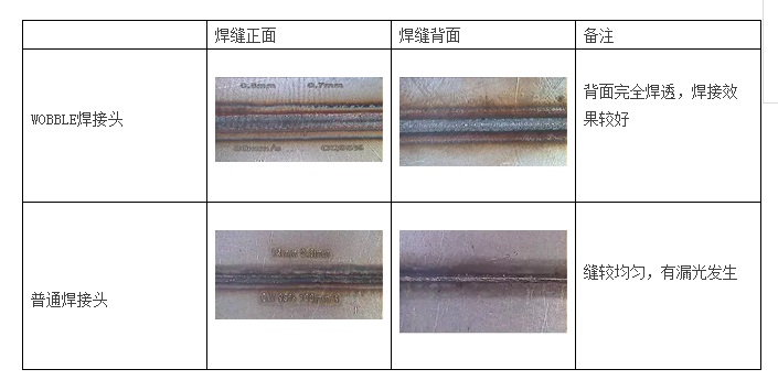 從(cong) 此次實驗可以看出,當使用WOBBLE焊接頭時,焊接質量效果明顯優(you) 於(yu) 普通焊接頭。焊縫表麵較為(wei) 平整、美觀,焊接質量較好。