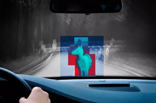 車用激光熱成像儀顯示的畫麵——公路上的鹿