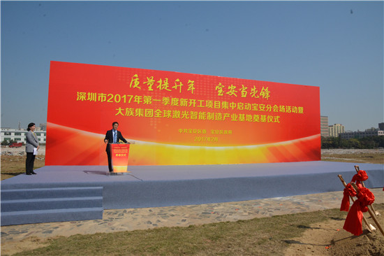 2017年2月15日,大族集團全球激光智能製造產(chan) 業(ye) 基地奠基儀(yi) 式在深圳市寶安區盛大舉(ju) 行。