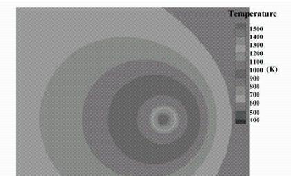圖:激光加工過程熔池上表麵溫度場分布,來源:南京航空航天大學