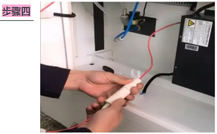 固定好激光管後,將連接水保護一端的進水管與(yu) 激光管負極端進水口相連接,另一根出水管與(yu) 激光管高壓端出水口連接好,如上圖所示。
