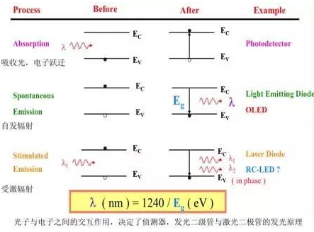 要發出激光,受激輻射是最基本的條件,如圖二(c)所示,能量激發有「光激發光(PL)」或「電激發光(EL)」二種方式,不論使用那一種方式都可以產生激光,光激發光(PL)是外加光能使電子跳躍;電激發光(EL)則是外加電能使電子跳躍,將在後麵詳細介紹。