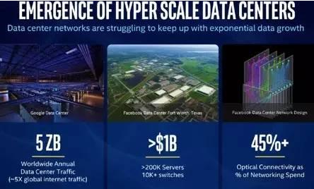 圖十一 大數據中心與雲計算數據庫未來需要大量的數據傳輸,這裏是google與face book的big data center