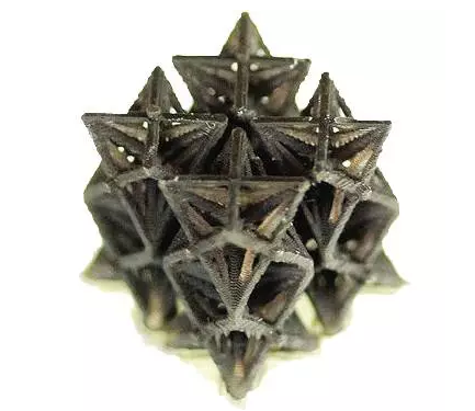 材料學和凝聚態物理學研究表明:材料的熱膨脹性能由正常的晶格振動決定,但同時還受其他物理效應的影響。當其他因素使單胞的體積隨溫度升高而縮小,並且作用大於正常原子非簡諧振動的效果時,材料表現出負熱膨脹性能。經過不斷研究,科學家們陸續報道了各種低熱膨脹材料以及負熱膨脹材料,比如鎢酸鋯(ZrW2O8)係列負熱膨脹材料、鋰霞石(LiAlSiO4)、磷酸鋯鈉(NaZr2P3O12)等。但是由於反常熱膨脹材料的熱力學性質研究相對較少,從而給合成製備熱膨脹係數可調材料帶來困難。2016年10月25日,美國勞倫斯利物莫爾國家實驗室(LLNL)發布了研究成果,該實驗室工程師和麻省理工學院(MIT)、南加州大學、加州大學洛杉磯分校科學家合作,首次利用3D打印技術製備出受熱收縮的超材料結構,如圖1所示。這個新型結構在降溫後還可恢複之前體積,能反複使用,適用於製作溫度變化較大環境中所需要的精密操作部件,如微芯片和高精光學儀器等。