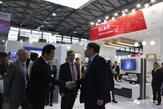 此外,3月14日上午,上海市經信委秘書長戎之勤、浦東新區副區長陳希到訪了華工激光展位。華工激光副總經理王建剛介紹了華工激光此次展出的激光智能製造的先進技術和裝備。