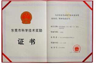 東(dong) 莞市科技進步一等獎證書(shu)